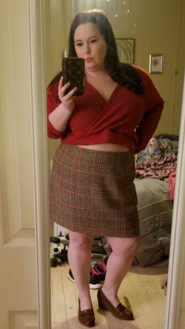 I have always been obsessed with the movie Clueless and its fashion sense. Cher is definitely my style spirit animal. From plaids to faux fur and all the cute colors and prep. It just makes me so happy.Needless to say, when I found this plaid skirt and cropped sweater top at Forever 21 in the plus size section for $5 a piece, I was astounded! I consider this my “fall cher”.Thoughts?